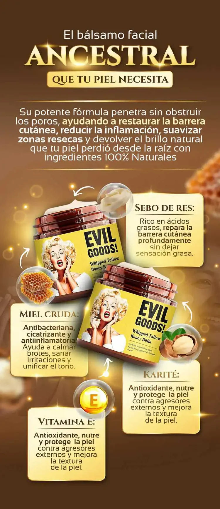 Evil Goods! Llega con una fórmula brutalmente honesta: Sebo de res grass - fed + miel de manuka + aceite de oliva orgánico. Pura nutrición que se convierte en belleza