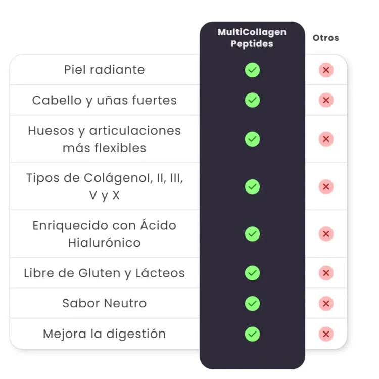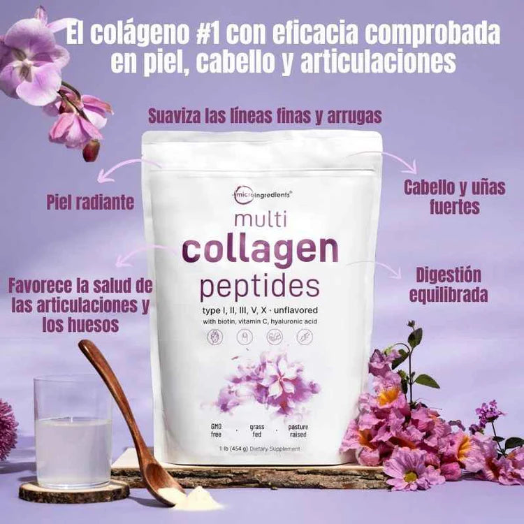 Colágeno tipos I, II, III, V y X : para un soporte completo de la piel, las articulaciones y los huesos.
